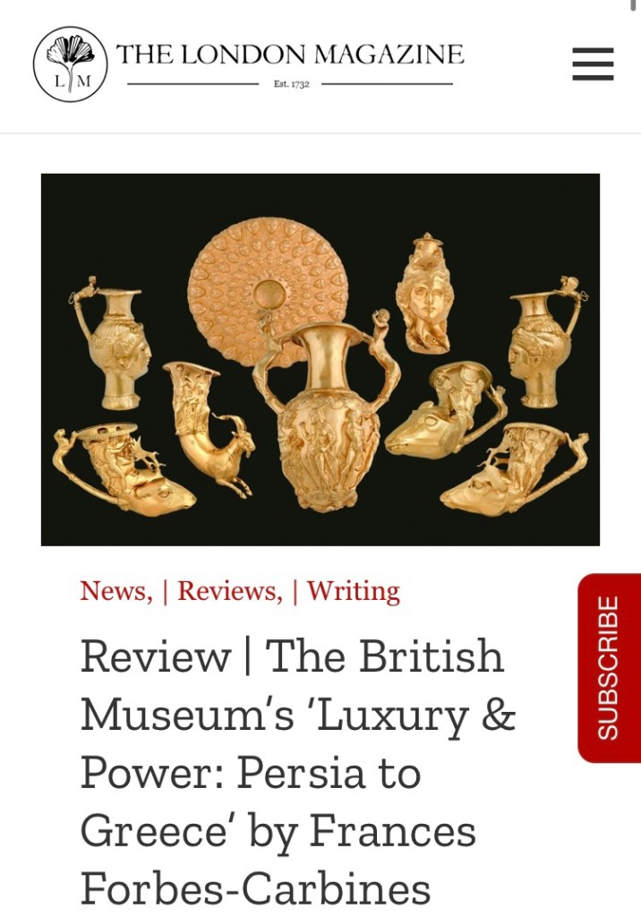Today The London Magazine published my review of the British Museum exhibition ‘Luxury and Power: Persia to Greece’.